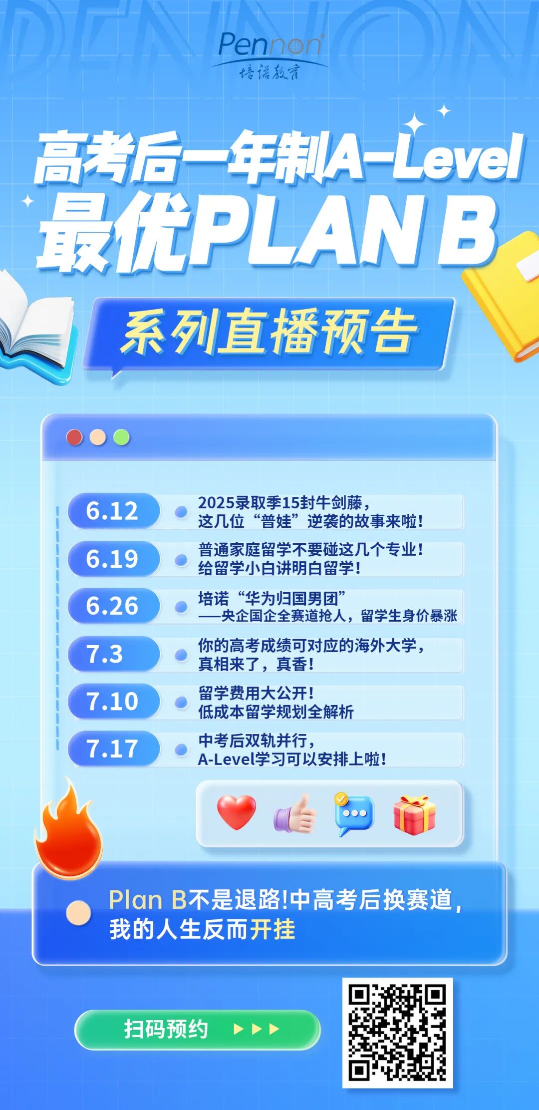 立即行动!关注培诺教育公众号,获取最新直播动态及升学干货!预约6月12日开启的“中高考后升学Plan B系列直播”,解锁A-Level黄金通道,开启你的新赛道之旅!