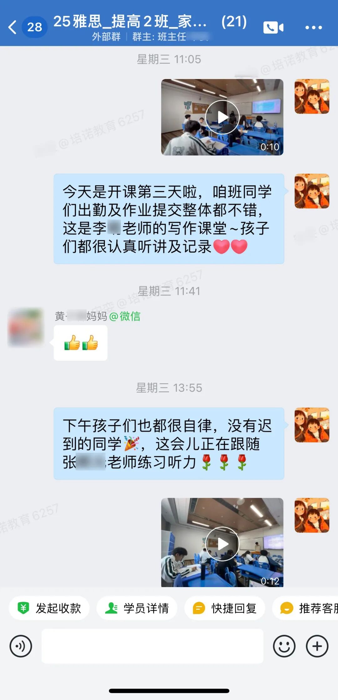 集训营开课一周多,同学们均取得了不同程度的进步。班主任以跟班“伴读”的方式及时与家长们沟通同学们的学习进度与收获成果,获得了家长们的一致认可,家长群里全是“感谢老师”“孩子进步太明显” 的好评,还有同学直接拿着模考高分成绩单来报喜—— 这效果,杠杠的!