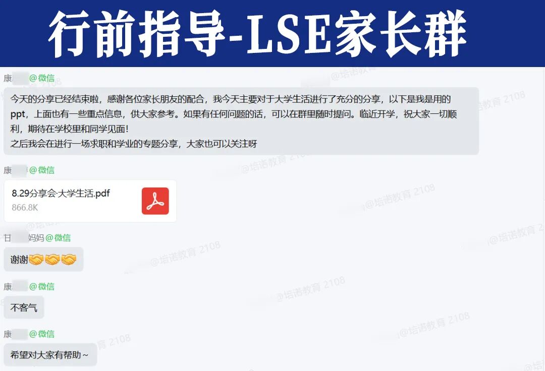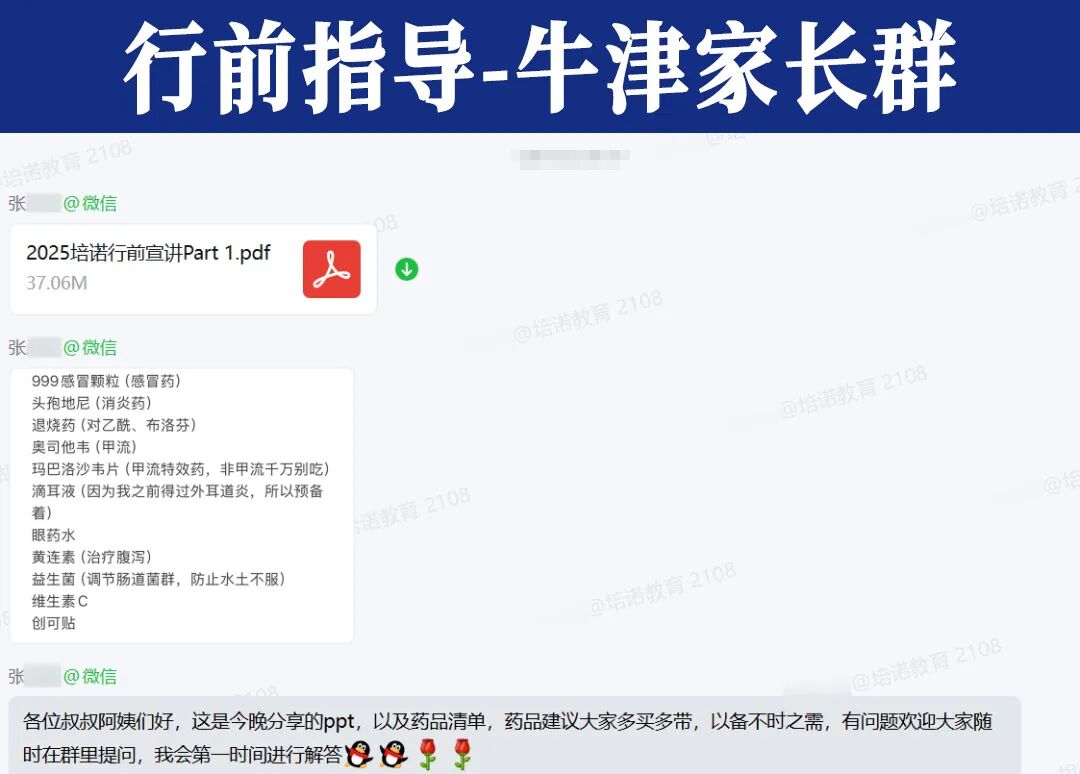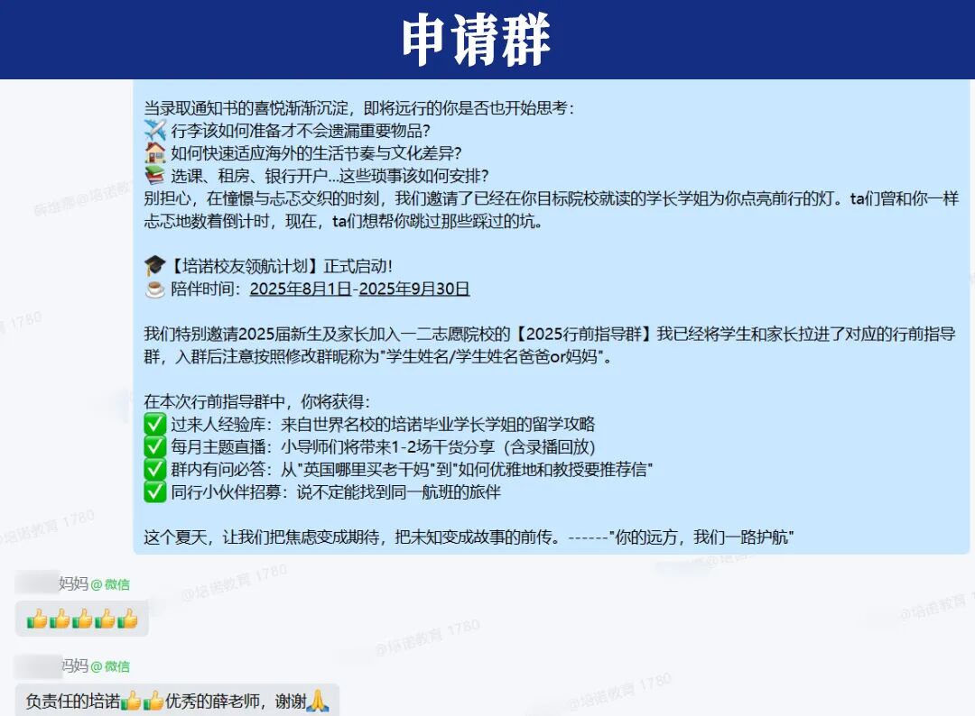 在培诺各个院校专属行前群里,学长学姐从不缺席。